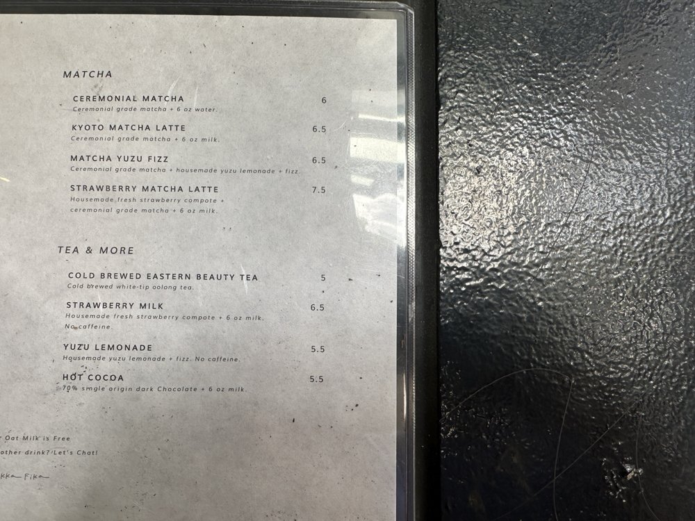 - The baked goods are standout items, particularly the miso caramel canelé, praised for its crispy exterior and custardy center.